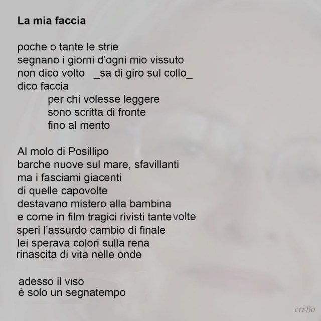 Questa voce è stata pubblicata in poesie su immagini e contrassegnata con bambina, colori vita, film, finale, fronte, mare, mento, onde, Posillipo, rena, segnatempo, strie, vis. Contrassegna il permalink.
