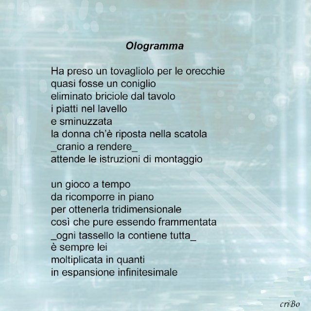 Ogni scritto o immagine qui pubblicati appartengono esclusivamente all'autore, salvo diversa indicazione. Si diffida chiunque a diffondere gli stessi scritti, interi o parziali, senza citare la fonte e l'autore oppure a fini di lucro. (Legge 22.04.1941 n. 633) Meta